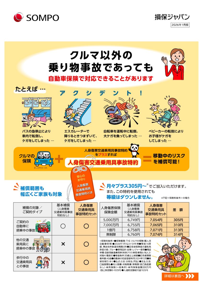 今回ご紹介するのは【人身傷害交通乗用具事故特約】